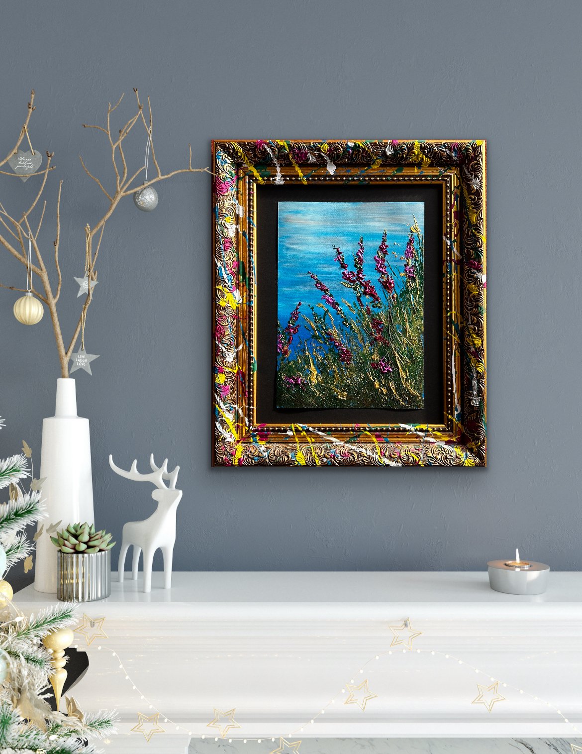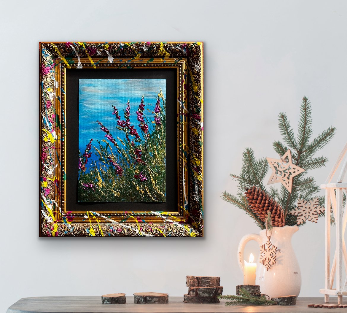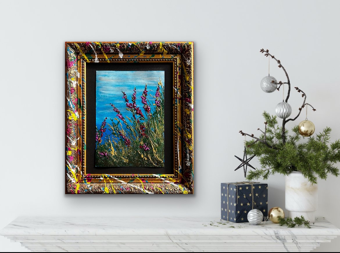 Beautiful painting of Scottish Heather, with hand painted frame.