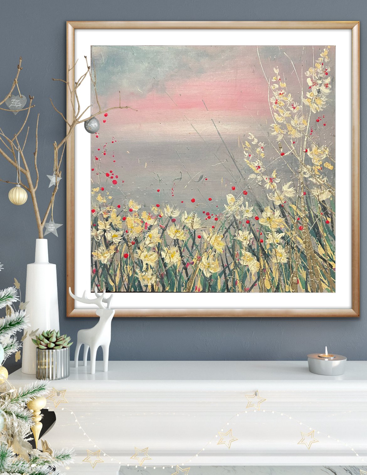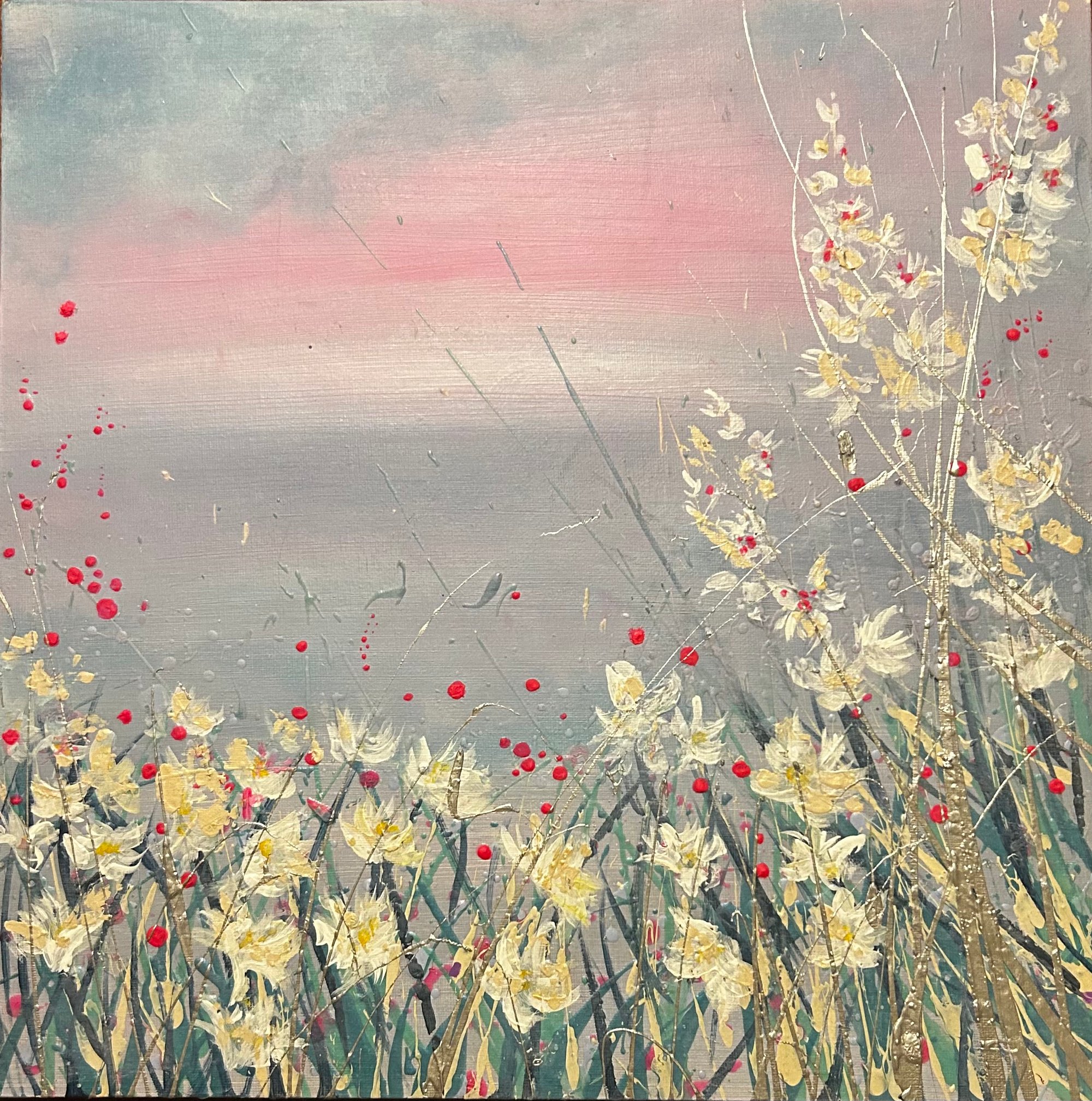 Canvas flat board, unframed acrylic painting of Hellebores.